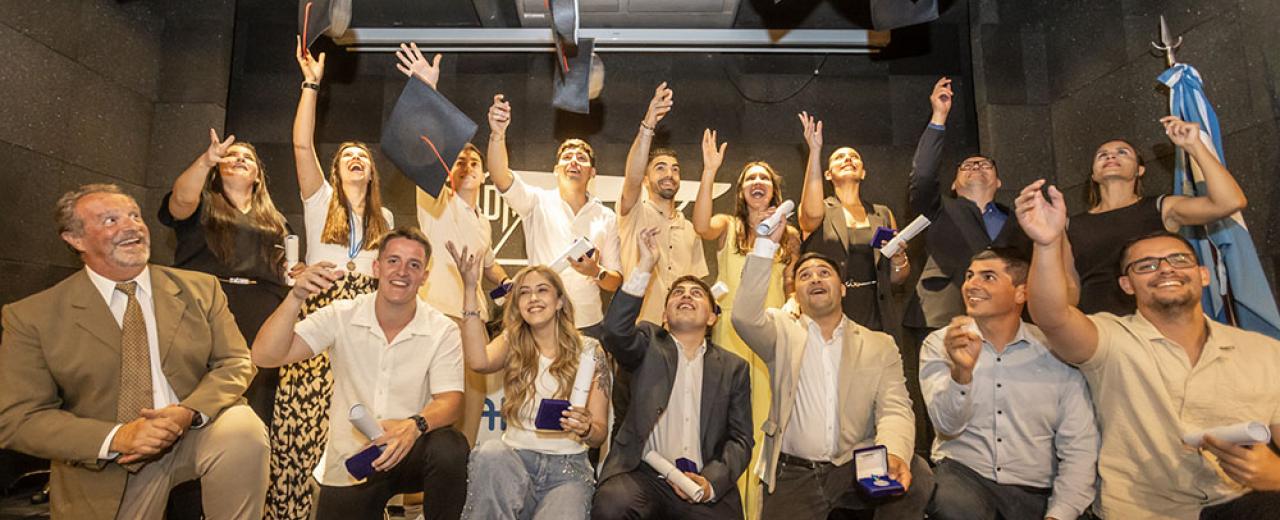 En segundo lugar, la primer promoción de graduados en nuestra modalidad de educación a distancia, con la presencia, entre otros, de alumnos de la Patagonia, que trabajan en los aeropuertos de Viedma y Neuquén, y sus familias.
