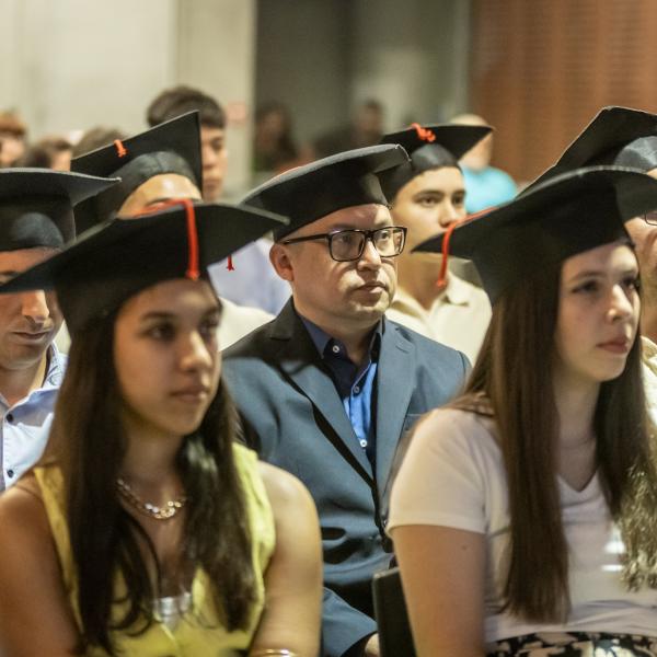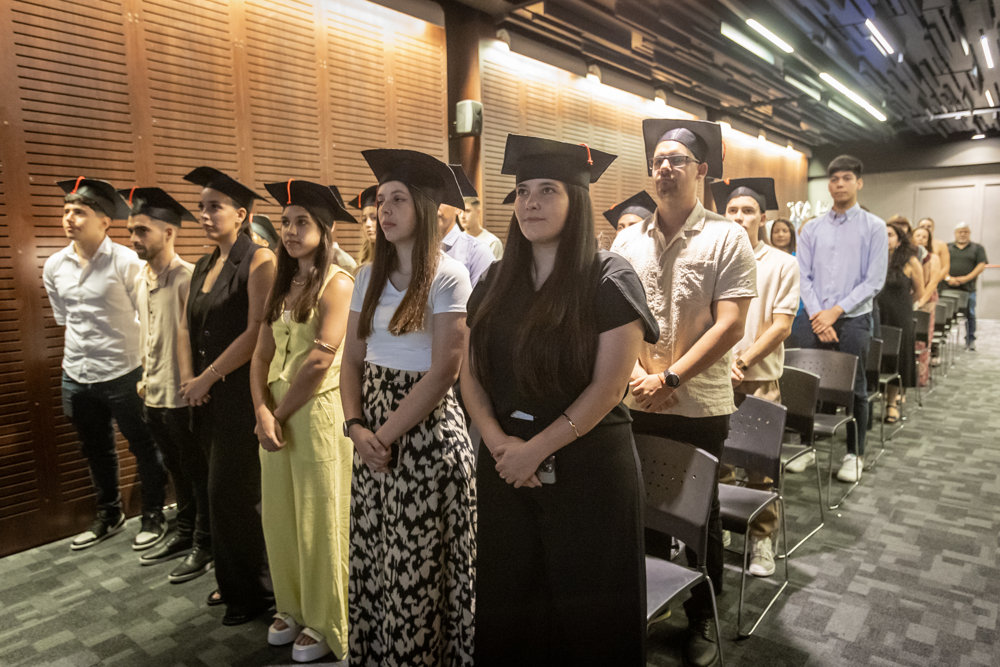 En primer lugar, los 21 graduados y graduadas de nuestra Tecnicatura con sus familiares y amigos. Con una convocatoria que refleja, cada vez más, nuestros objetivos permanentes de calidad académica, igualdad de género y federalismo. En este caso, además, con la graduación de alumnos provenientes de países hermanos (Colombia y Venezuela). En su gran mayoría, trabajadores y trabajadoras aeronáuticos que aspiran a progresar en su carrera laboral y proseguir sus estudios de Licenciatura a través de nuestro convenio con la Universidad de Ezeiza.