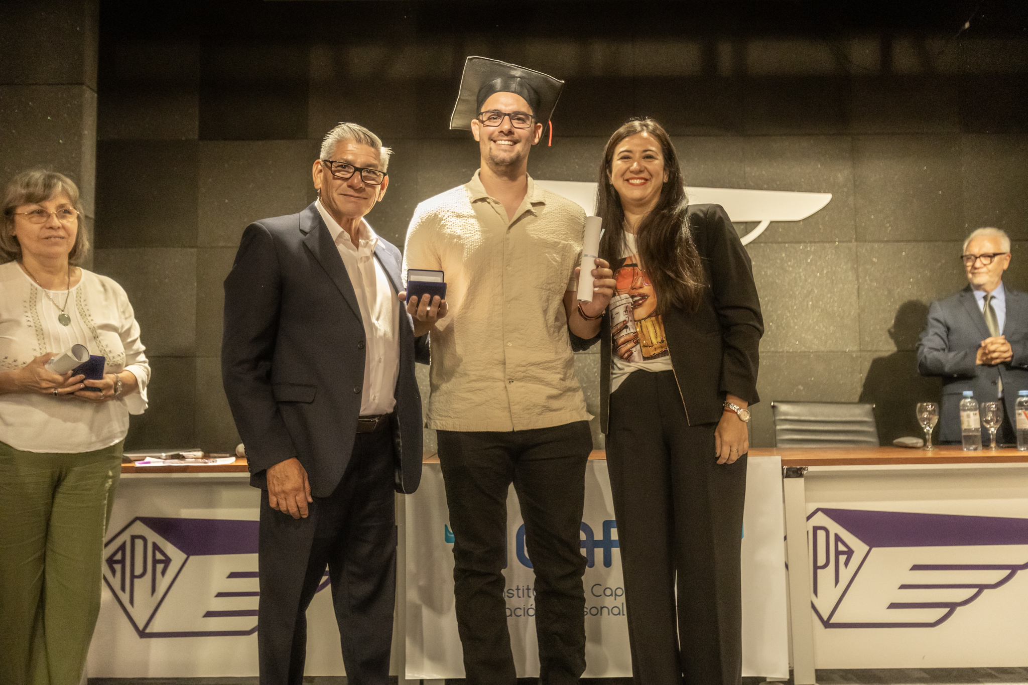 Sin duda, la mayor emoción fue la entrega de diplomas y medallas a las y los graduados, y el homenaje y reconocimiento de las autoridades y docentes al esfuerzo, la vocación y compromiso demostrados durante los tres años de estudios, así como un llamado a la responsabilidad que les cabe como nuevos profesionales del sector en esta actividad compleja, en permanente cambio y siempre a la vanguardia en avances tecnológicos. A partir de su especialización en Gestión, serán los futuros responsables de garantizar el permanente desarrollo y sostenibilidad ambiental, económica, social y laboral del transporte aéreo.
