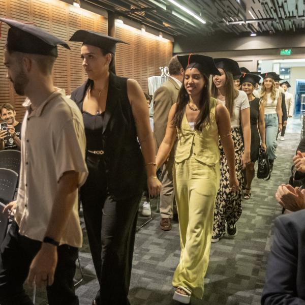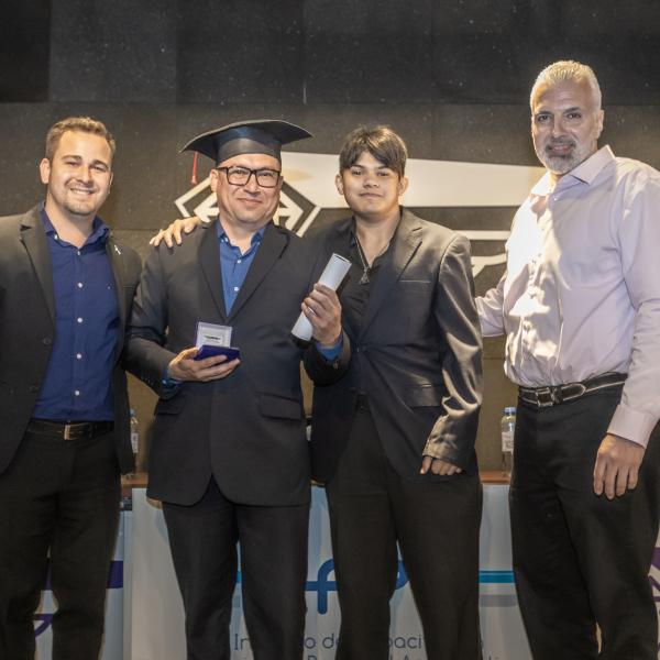 En segundo lugar, la primer promoción de graduados en nuestra modalidad de educación a distancia, con la presencia, entre otros, de alumnos de la Patagonia, que trabajan en los aeropuertos de Viedma y Neuquén, y sus familias.