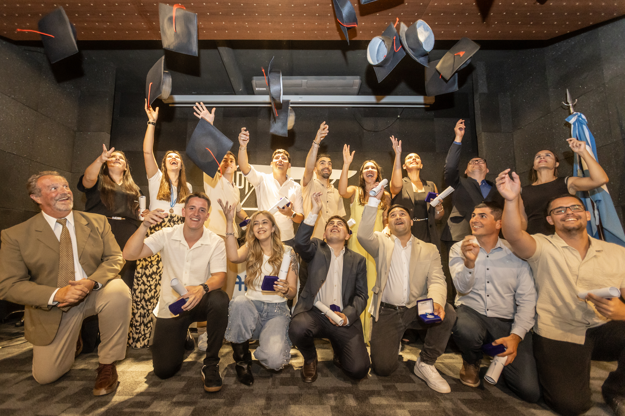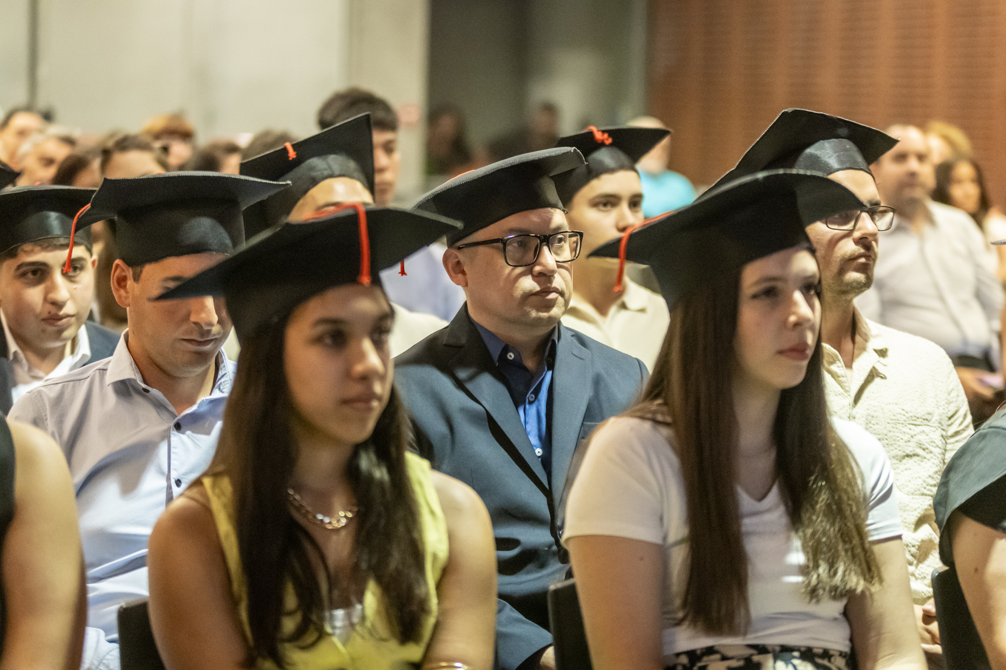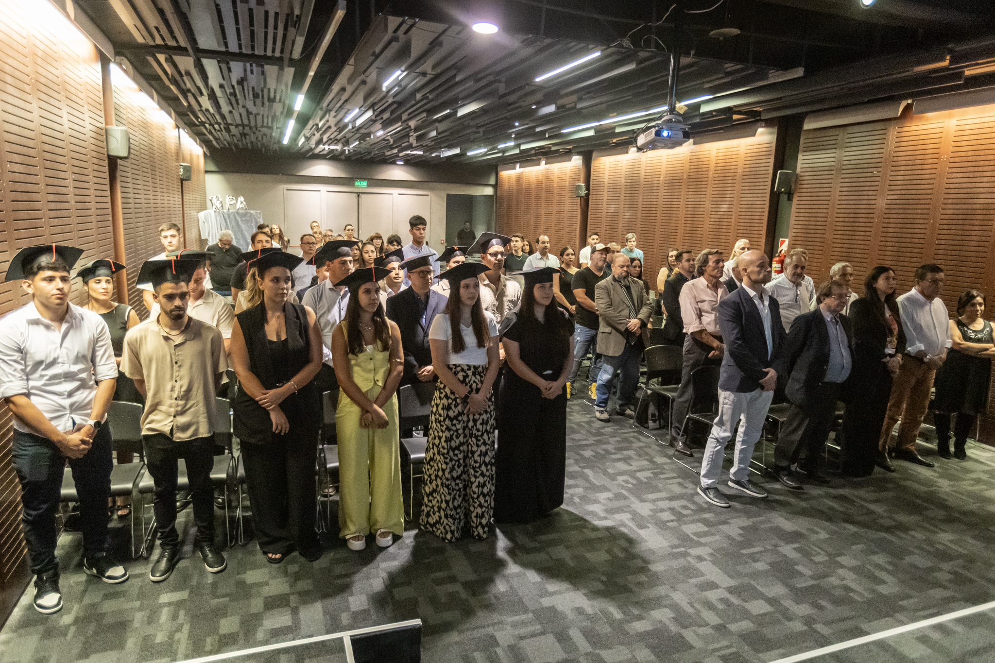 En primer lugar, los 21 graduados y graduadas de nuestra Tecnicatura con sus familiares y amigos. Con una convocatoria que refleja, cada vez más, nuestros objetivos permanentes de calidad académica, igualdad de género y federalismo. En este caso, además, con la graduación de alumnos provenientes de países hermanos (Colombia y Venezuela). En su gran mayoría, trabajadores y trabajadoras aeronáuticos que aspiran a progresar en su carrera laboral y proseguir sus estudios de Licenciatura a través de nuestro convenio con la Universidad de Ezeiza.
